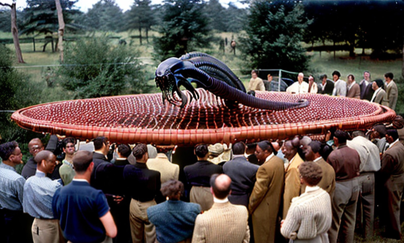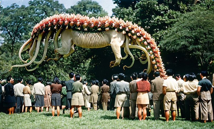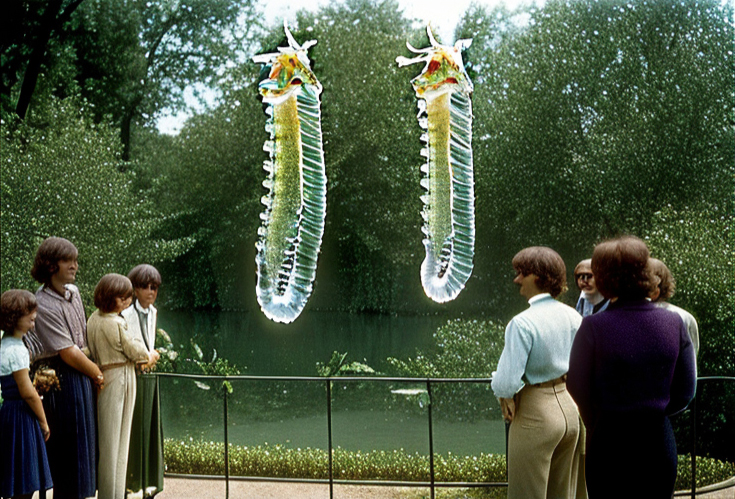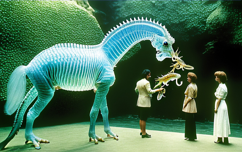 La démarche initiale était de créer des hybrides grâce aux prompts et d’imaginer leur intégration dans un zoo imaginaire dans une vidéo. Très vite en ajoutant de nouveau mots dans les prompts comme “xenomorphs”, “angels” ou “transparent seahorses”, de nouvelles créatures nous sont apparues.